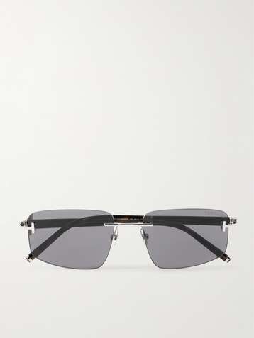 Private 4 Rimless Rectangular-Frame Gold-Tone, Horn and Tortoiseshell Sunglasses