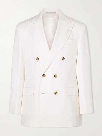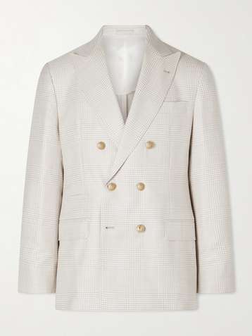 Double-Breasted Prince of Wales Checked Wool-Blend Blazer