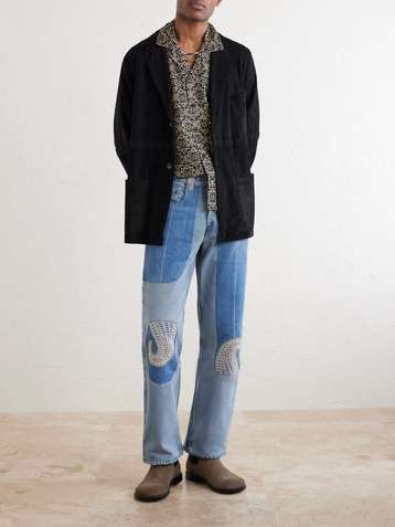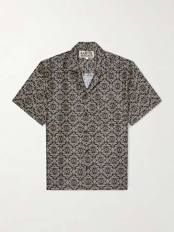 Camp-Collar Crocheted Cotton-Blend Shirt