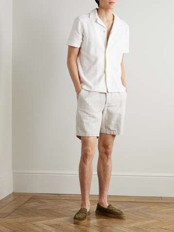 Maitan Camp-Collar Organic Cotton Seersucker Shirt