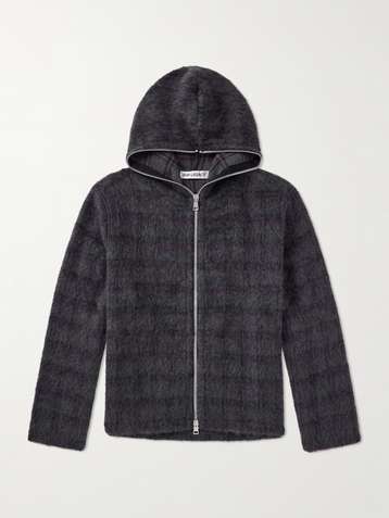 Checked Brushed Wool-Blend Zip-Up Hoodie