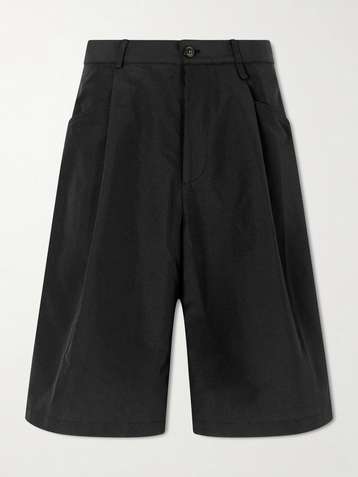 Joetsu Straight-Leg Pleated Cotton and Linen-Blend Twill Bermuda Shorts