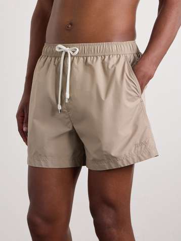 Straight-Leg Mid-Length Striped Seersucker Swim Shorts