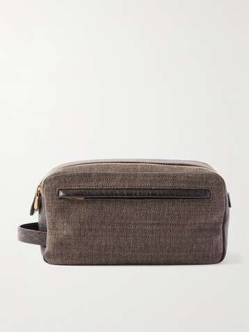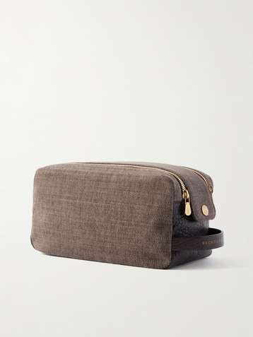 Suede-Trimmed Full-Grain Leather Wash Bag