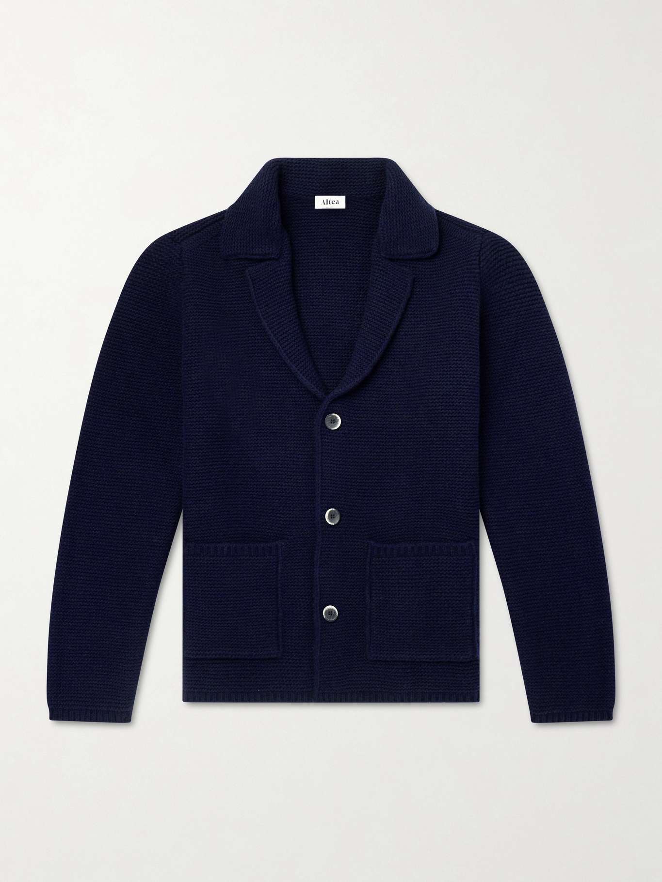 Rooted in Milan, Altea is known for its easy approach to knitwear and relaxed tailoring; this cardigan bridges the two in virgin wool. Patch pockets and a buttoned front keep the slightly chunky knit softly structured, folding easily as a considered alternative to a blazer when travelling.
