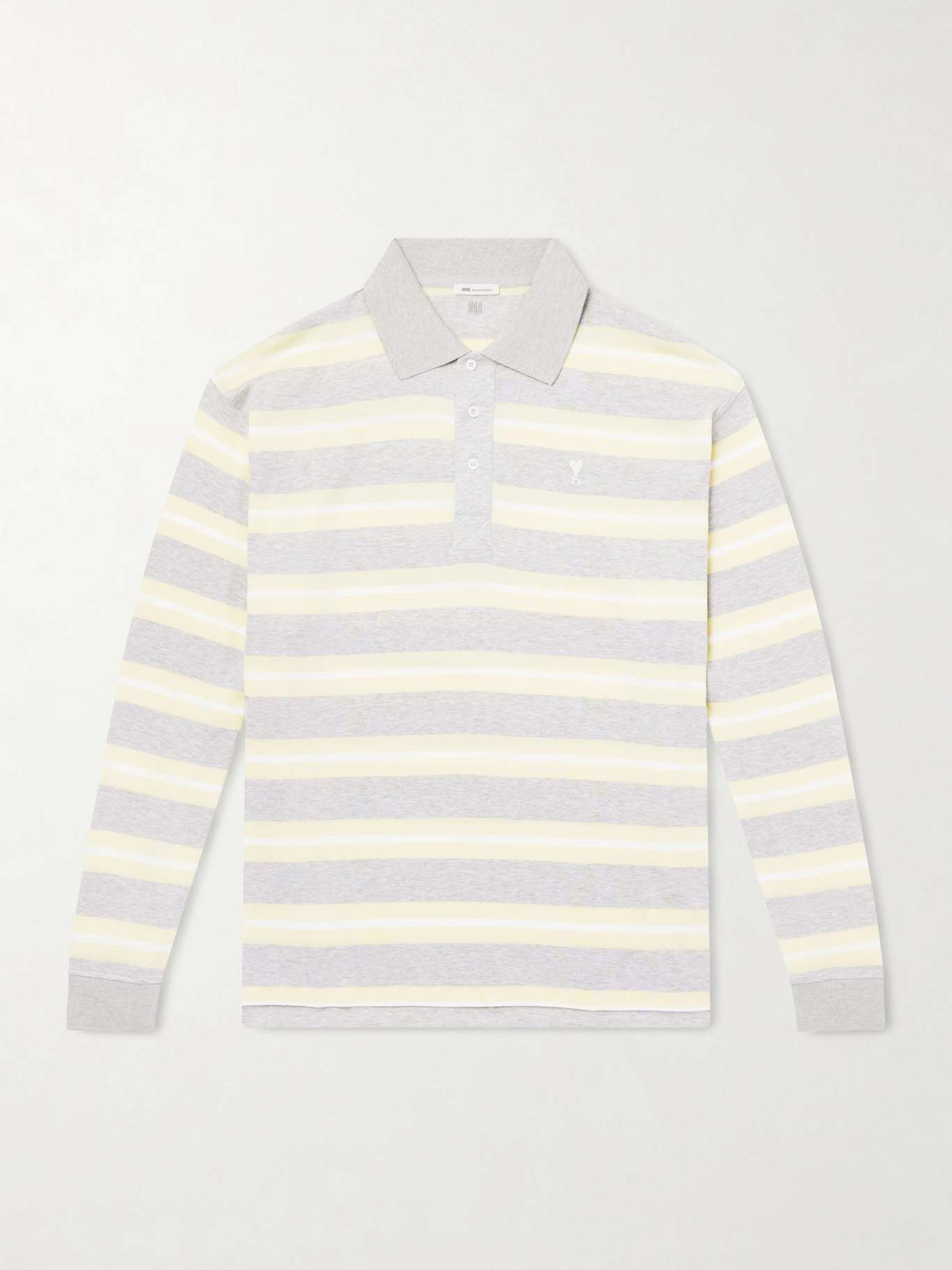 AMI PARIS Striped Cotton-Jersey Polo Shirt