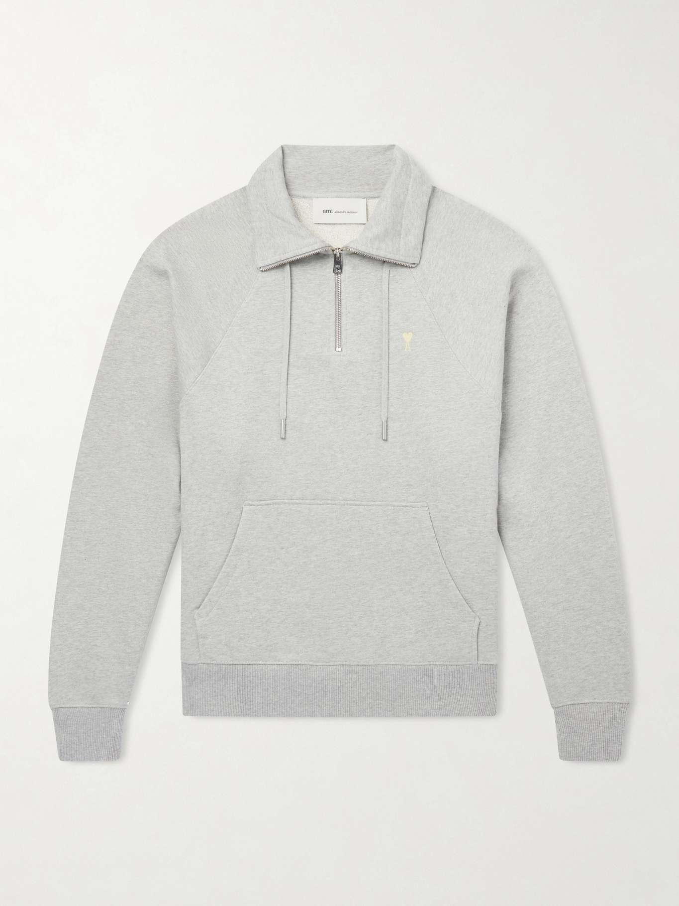 AMI PARIS Logo-Embroidered Cotton-French Terry Half-Zip Sweater