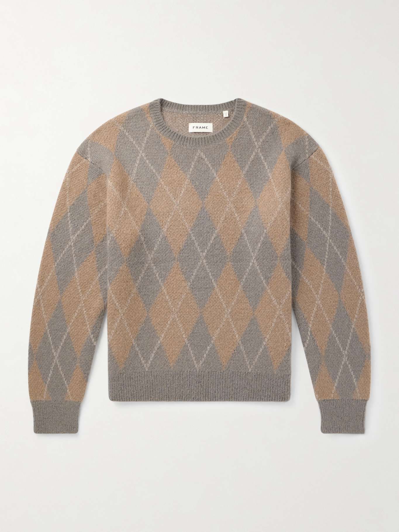 FRAME's sweater is jacquard-knitted with a muted argyle in a retro palette of beige, brown and mushroom. Blended with wool and mohair, it has a relaxed fit and is ribbed at the edges.