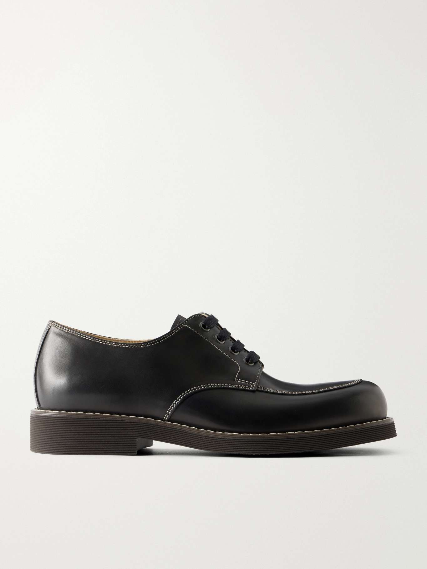 Distinguished by subtle contrast topstitching and a clean construction, Lemaire’s round-toe derbies are crafted from vegetable-tanned leather and set on a lightweight rubber sole. Their modern, understated silhouette pairs easily with relaxed tailoring and workwear-inspired trousers.
