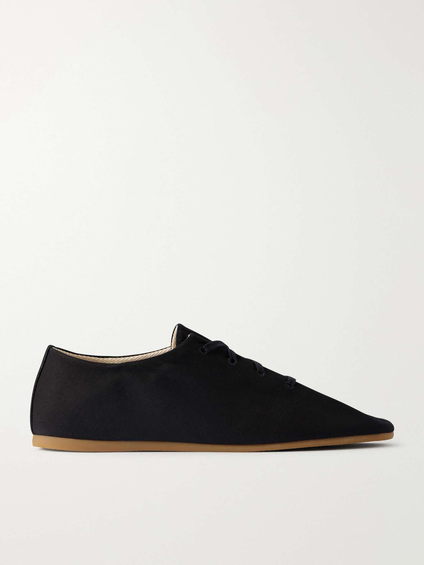 Inspired by flamenco dance slippers, these Lemaire sneakers have an upper and tongue cut from a single piece folded onto itself. Crafted in organic cotton-piqué canvas, they feature an elongated square toe and a flat, slim rubber sole, suited to both everyday wear and dancing.