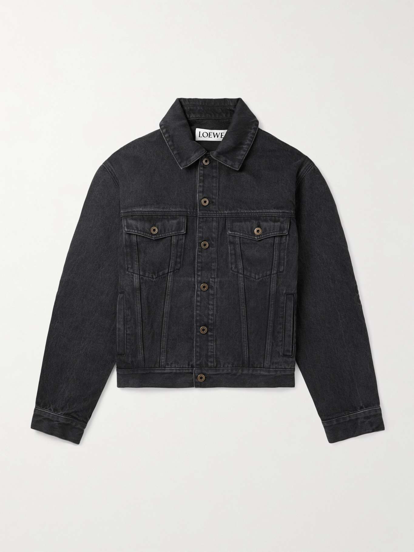 Loewe's jacket puts a witty spin on branding, relegating its 'Anagram' logos to the sleeves like elbow patches. It's made from denim in a classic trucker-style cut.
