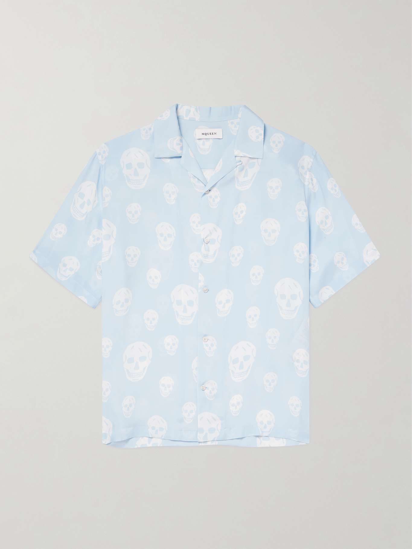 Skull motifs have remained a part of McQueen's DNA since the late designer's graduate collection in 1992. Printed all over with the macabre motif, this shirt is made from lightweight crepe de chine and has a relaxed camp collar.