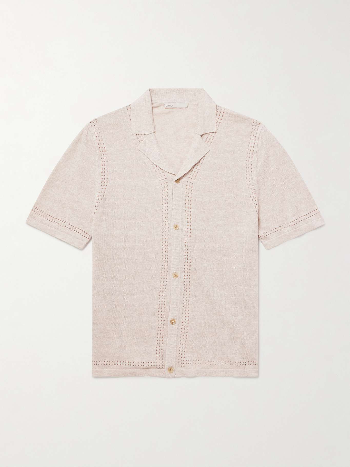 ONIA Camp-Collar Pointelle-Knit Linen Shirt