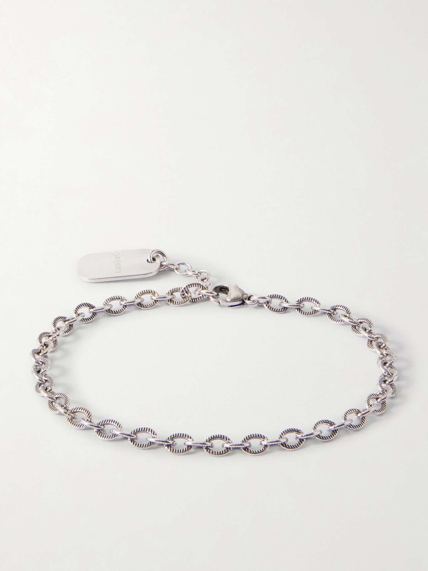SAINT LAURENT's bracelet will look great at the cuff of a blazer or a blouson jacket. It's made from silver-tone metal and cast with slim, circular links that'll lie flat against the wrist.