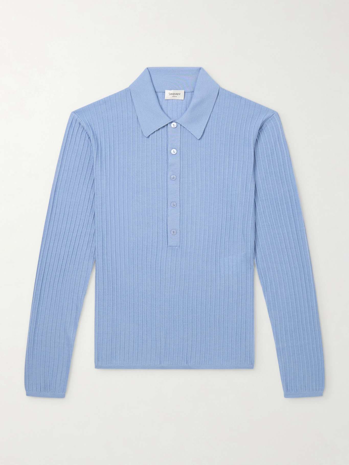 SAINT LAURENT Slim-Fit Ribbed Wool, Cashmere and Silk-Blend Polo Shirt