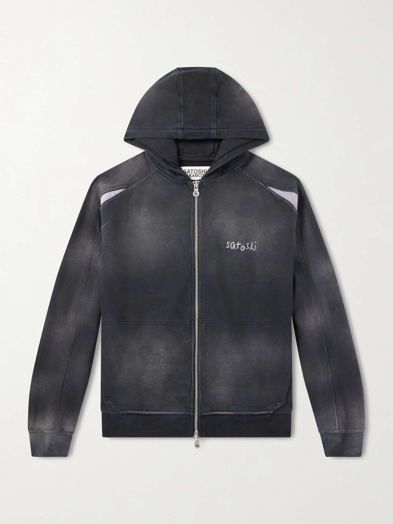 SATOSHI NAKAMOTO Logo-Embroidered Cotton-Jersey Zip-Up Hoodie