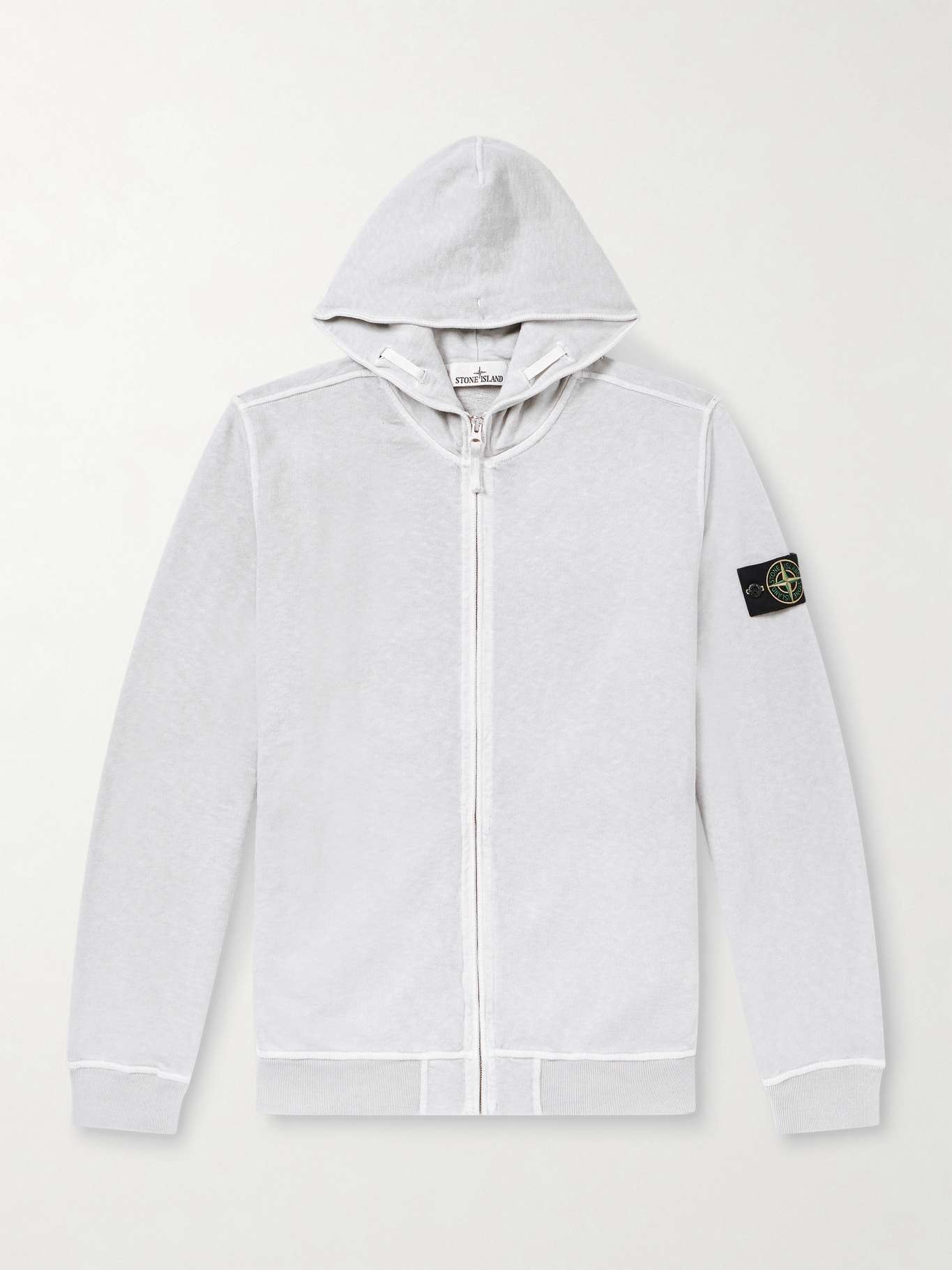 STONE ISLAND Logo-Appliquéd Cotton-Jersey Zip-Up Hoodie