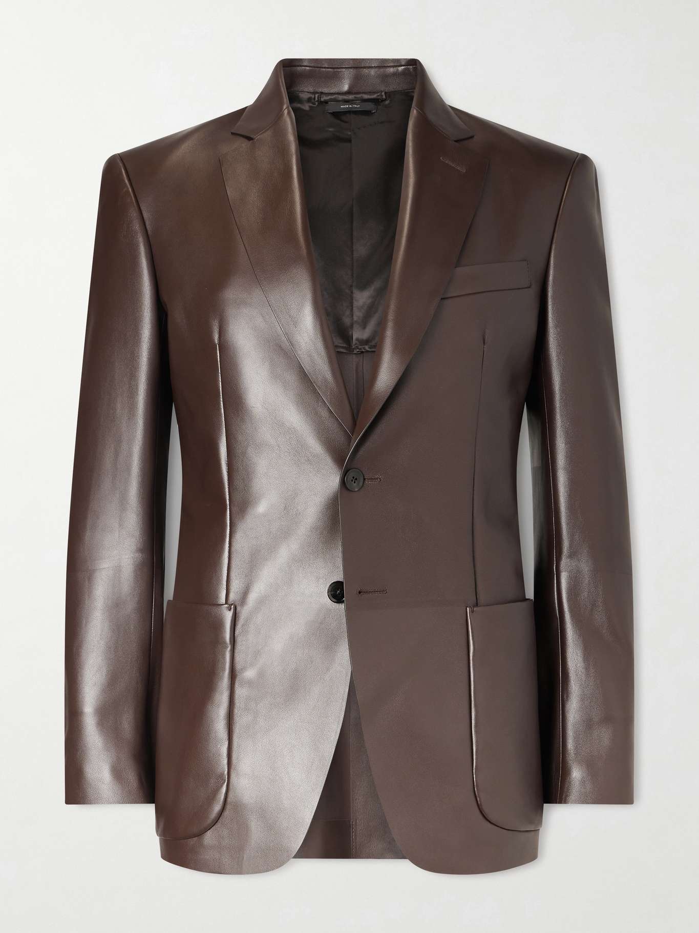 TOM FORD's blazer evokes rock 'n' roll - a reference point that never goes out of style. It's tailored from soft leather, which has a subtle gleam in evening light.