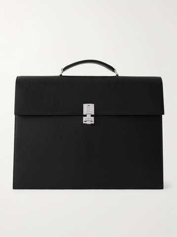 Zeppo Duo Full-Grain Leather-Trimmed Suede Briefcase