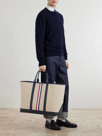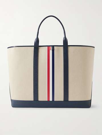 Full-Grain Leather-Trimmed Cotton-Canvas Tote Bag