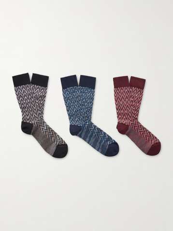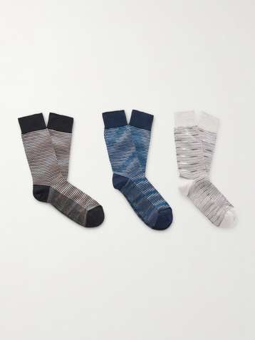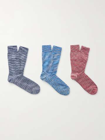 Three-Pack Crochet-Knit Cotton-Blend Socks