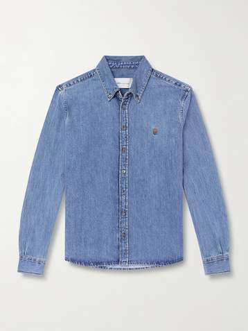 Button-Down Collar Logo-Embroidered Denim Shirt