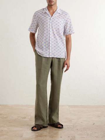 Roberto Camp-Collar Printed Linen Shirt