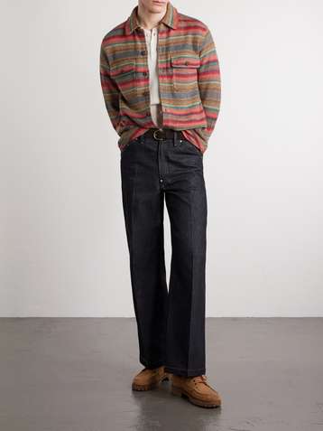 Camp-Collar Striped Cotton-Blend Jacquard Shirt