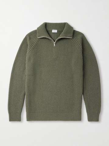 Leather-Trimmed Cashmere Half-Zip Ski Sweater