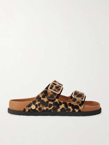 Arizona Leopard-Print Calf Hair Sandals
