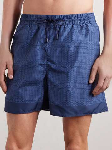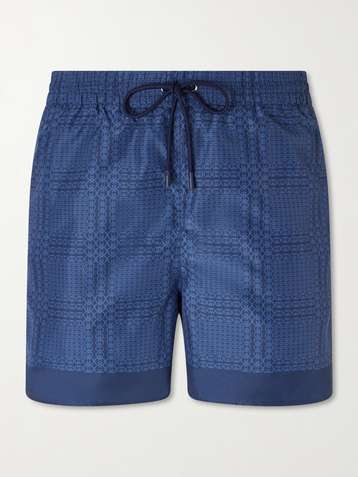 Straight-Leg Mid-Length Logo-Print Swim Shorts