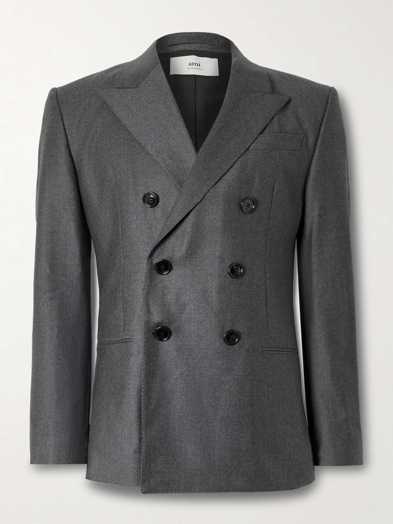 AMI PARIS' suit jacket adds instant polish to any workday or weekend look. Tailored from wool-flannel, it has a smart double-breasted profile and is framed by peak lapels. Wear it with the brand's matching trousers.