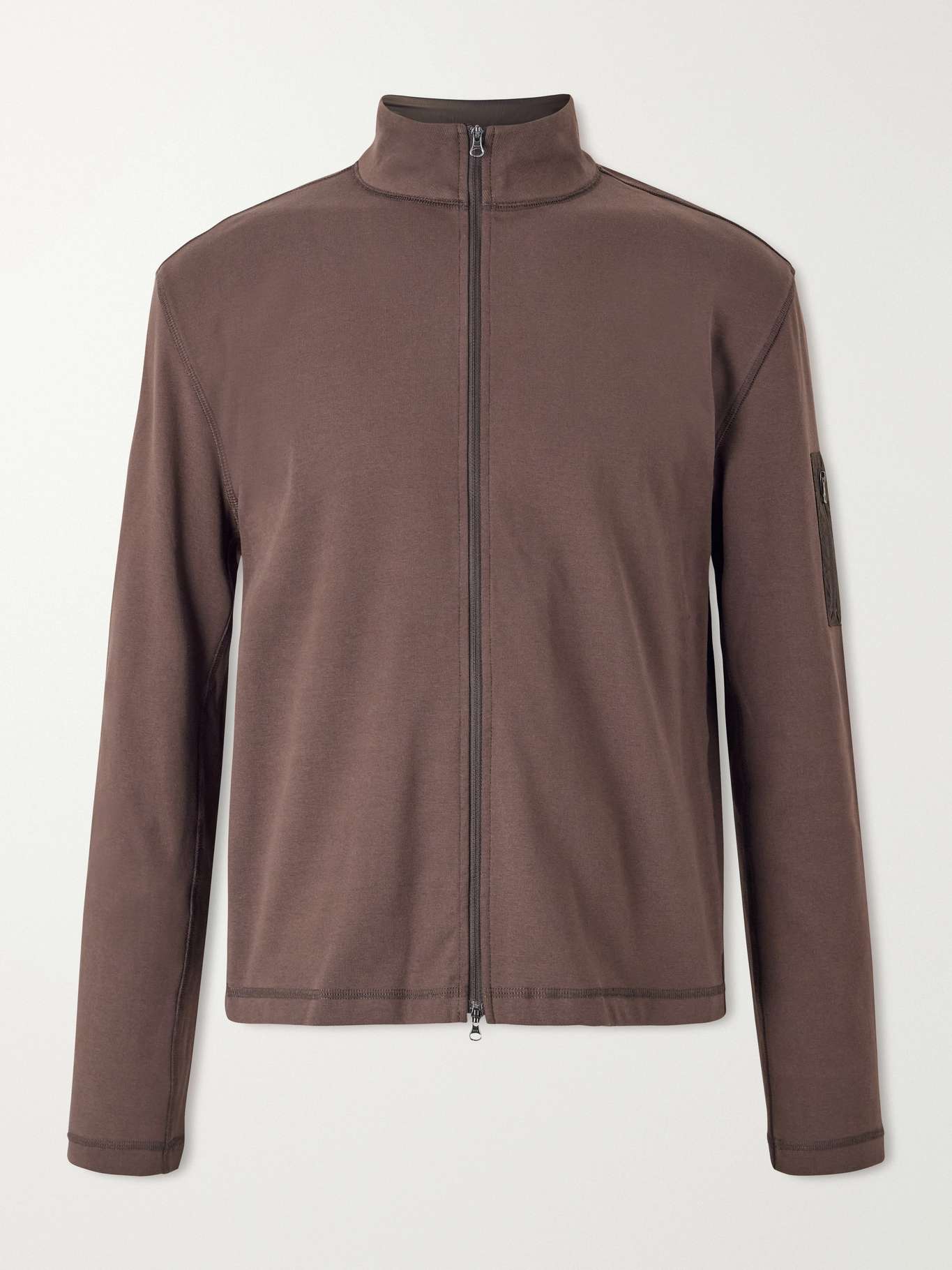 Amomento’s zip-up sweater sits between knitwear and light outerwear. Knitted from soft cotton, it has a clean, structured shape with a zip front that layers comfortably without bulk.