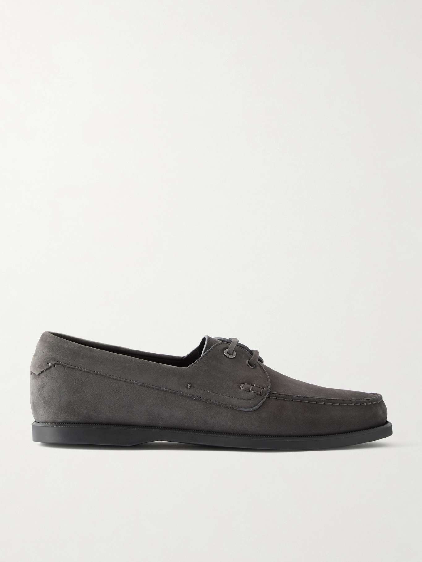 Brioni’s boat shoes are versatile enough for both formal and casual settings, ensuring plenty of wear. Made from nubuck, they feature a classic nautical silhouette with rounded toes and laces for a timeless finish.