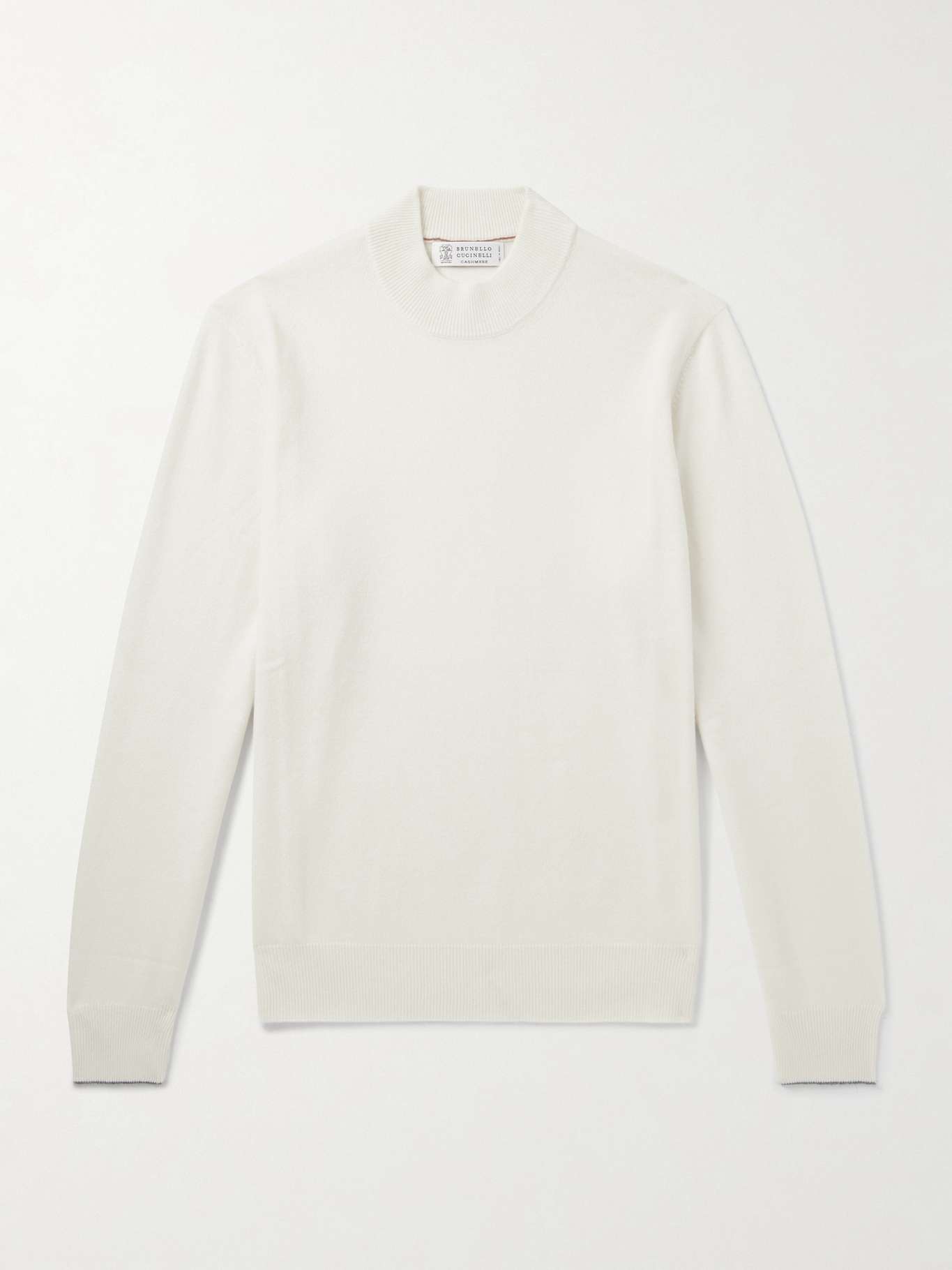 Finely-knitted from signature cashmere that's prized for its softness, Brunello Cucinelli's sweater is ideal for days when layering is essential. It's finished with ribbed trims including a mock-neck collar that subtly elevates it from similar styles.