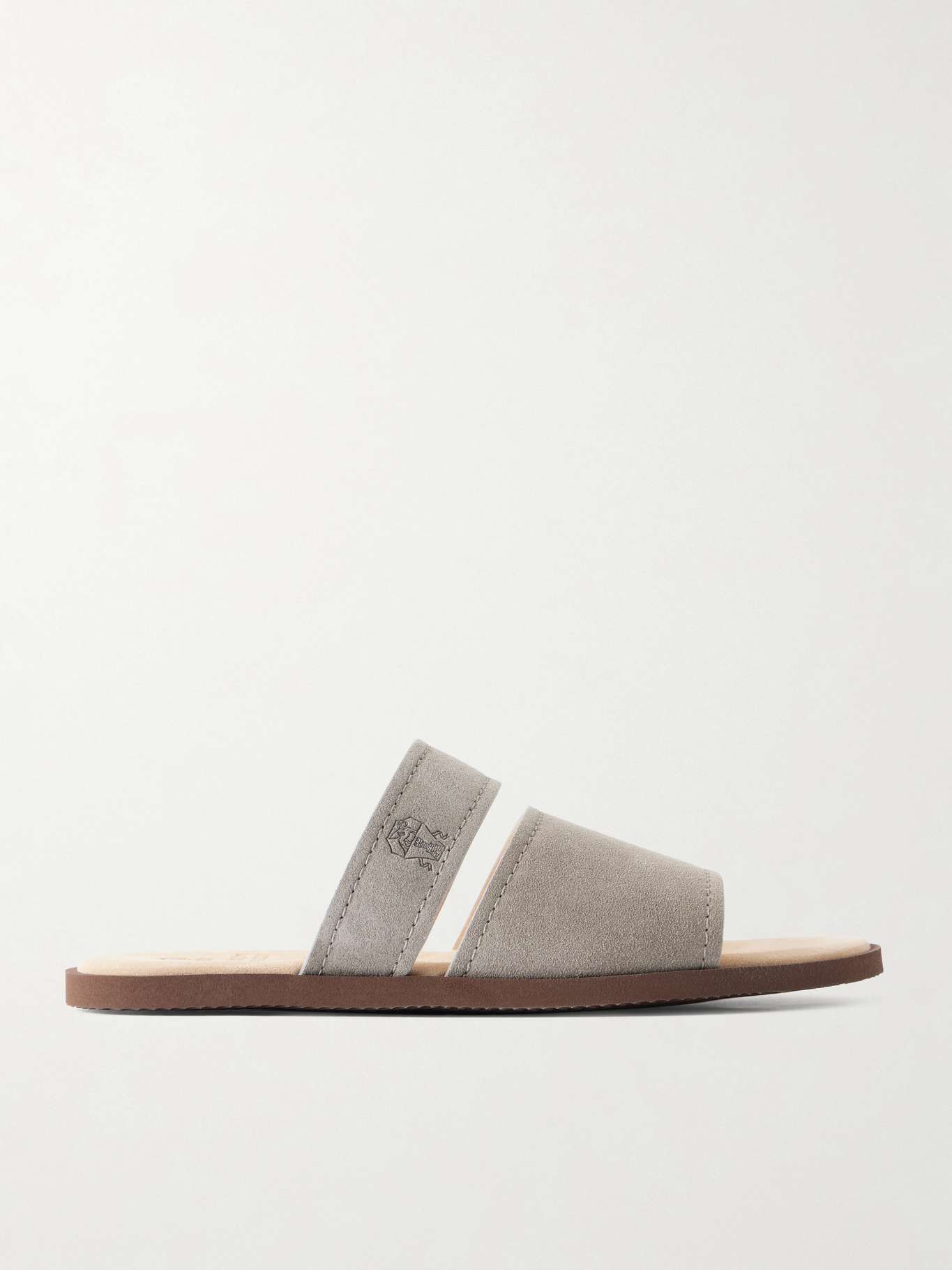 Focusing on understated details, Brunello Cucinelli approaches casual footwear with the same care as tailoring. These sliders are made from soft suede with wide straps and a cushioned footbed, set on a lightweight sole for an easy, relaxed feel.
