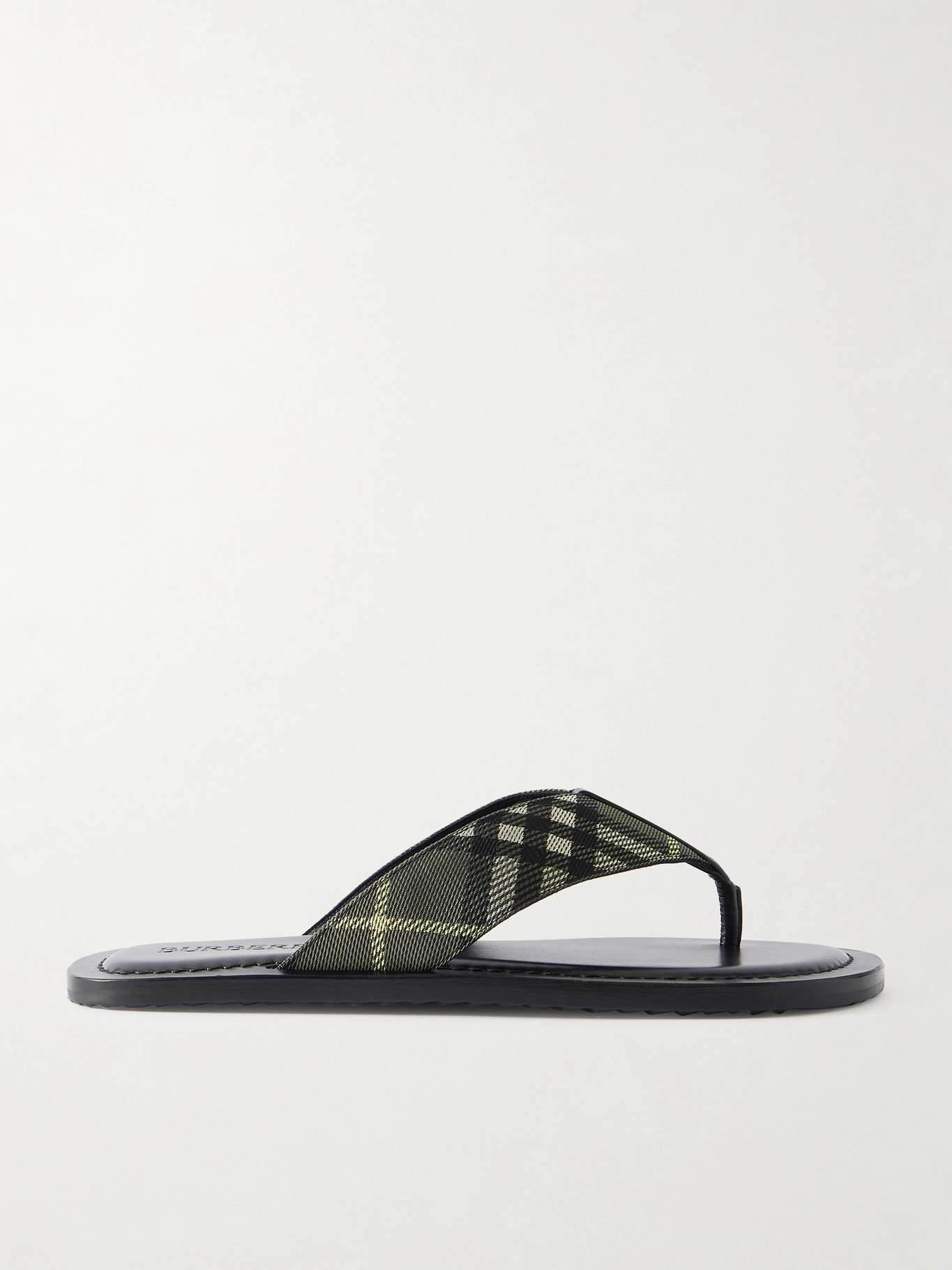 BURBERRY Pavillon Leather-Trimmed Checked Jacquard Sandals