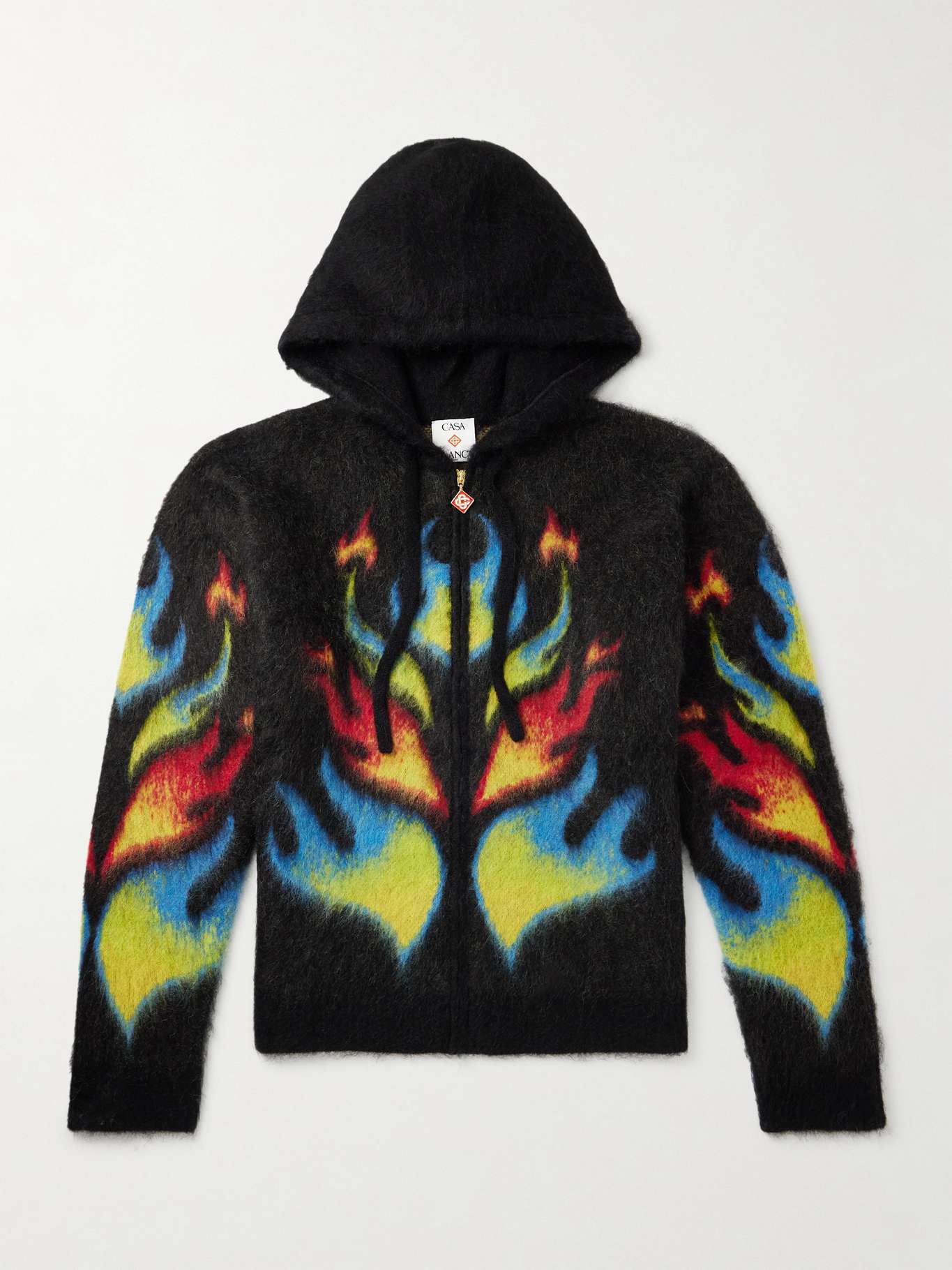 CASABLANCA Flame Laurel Brushed-Mohair Zip-Up Hoodie