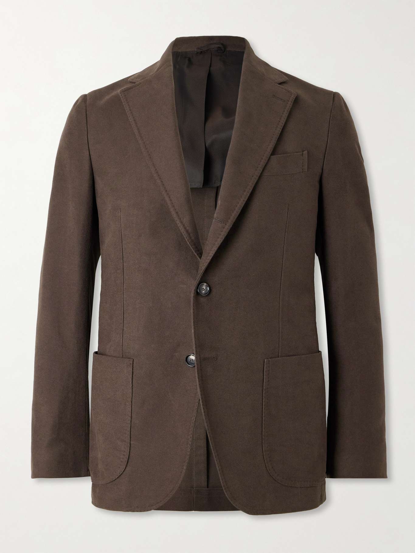 De Petrillo's suit jacket is made from naturally breathable cotton in a brown hue complemented by tonal buttons. It's constructed with a partial lining and light, flexible seamwork, as customary to Neapolitan tailoring.