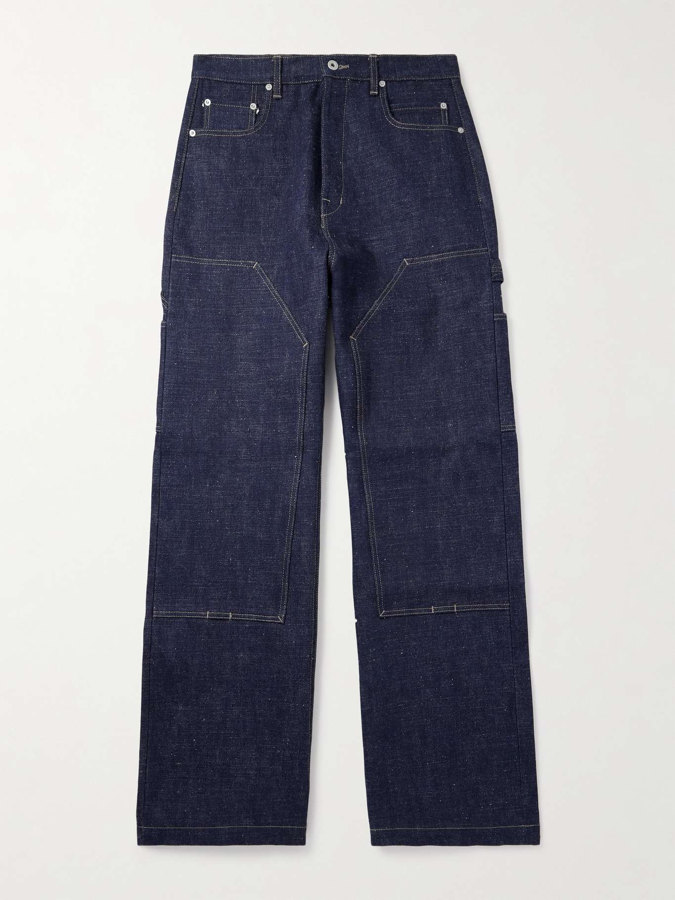 Inspired by carpenter styles, Rick Owens' jeans are designed with wide legs and reinforced knees. They have a debossed logo patch, tool pockets and hammer loops to lean into the utility look.