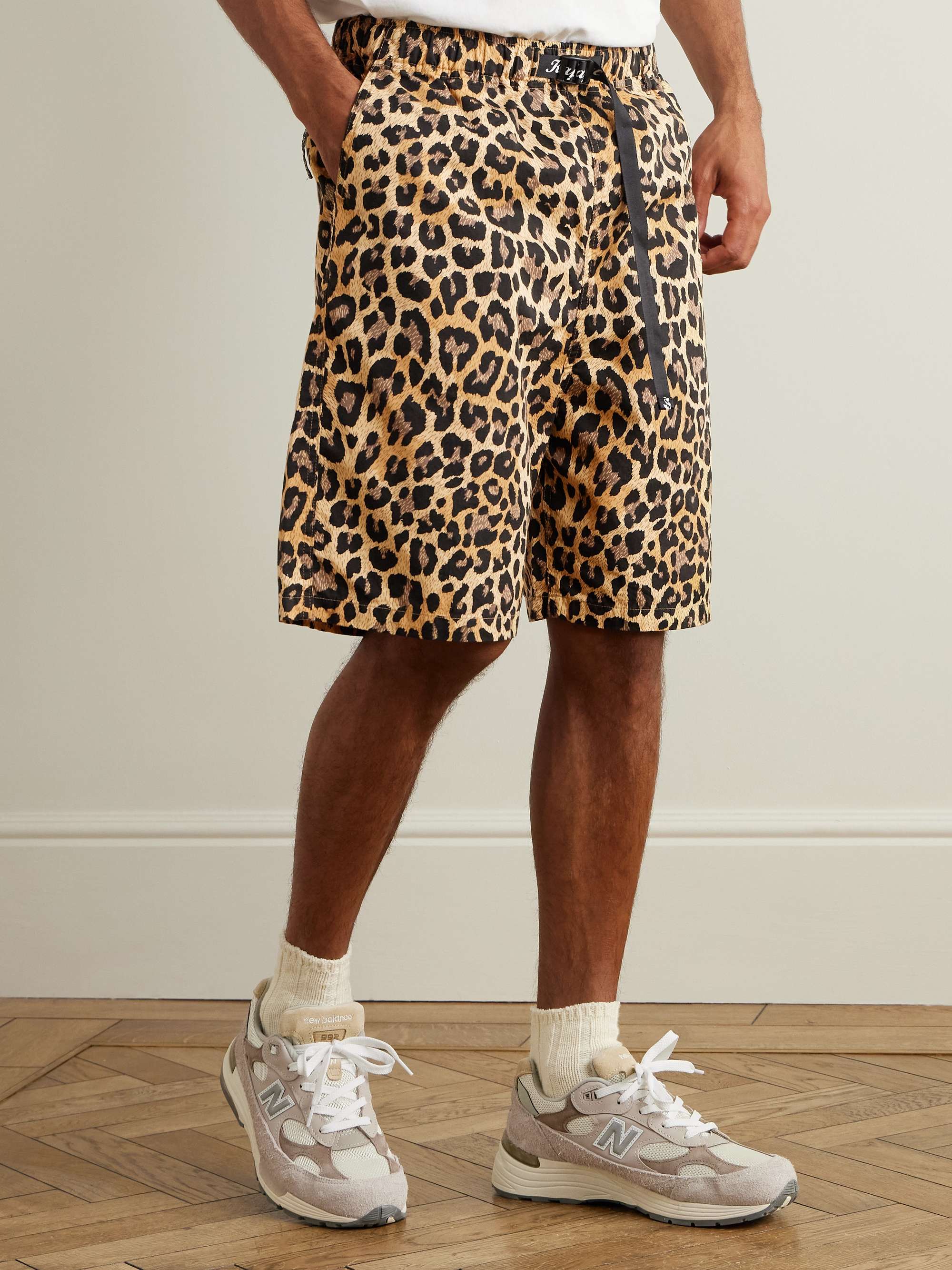 KAPITAL Easy Wide-Leg Belted Leopard-Print Cotton-Twill Shorts