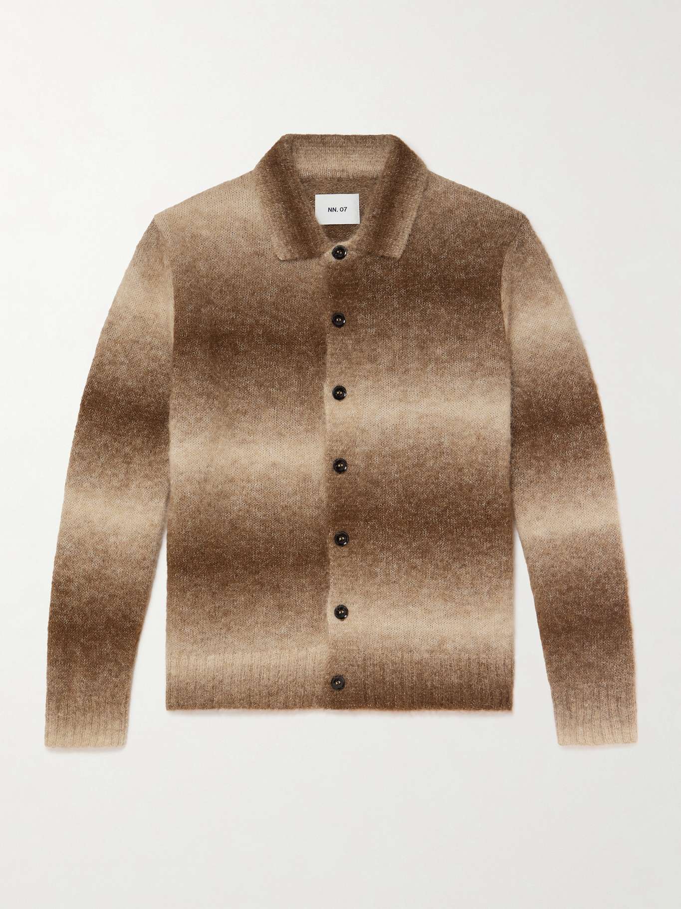 NN07's 'Alfie' cardigan is knitted to create a repeating gradient effect. It's made from an ultra-soft alpaca-blend sourced from Italy and meant to layer comfortably.