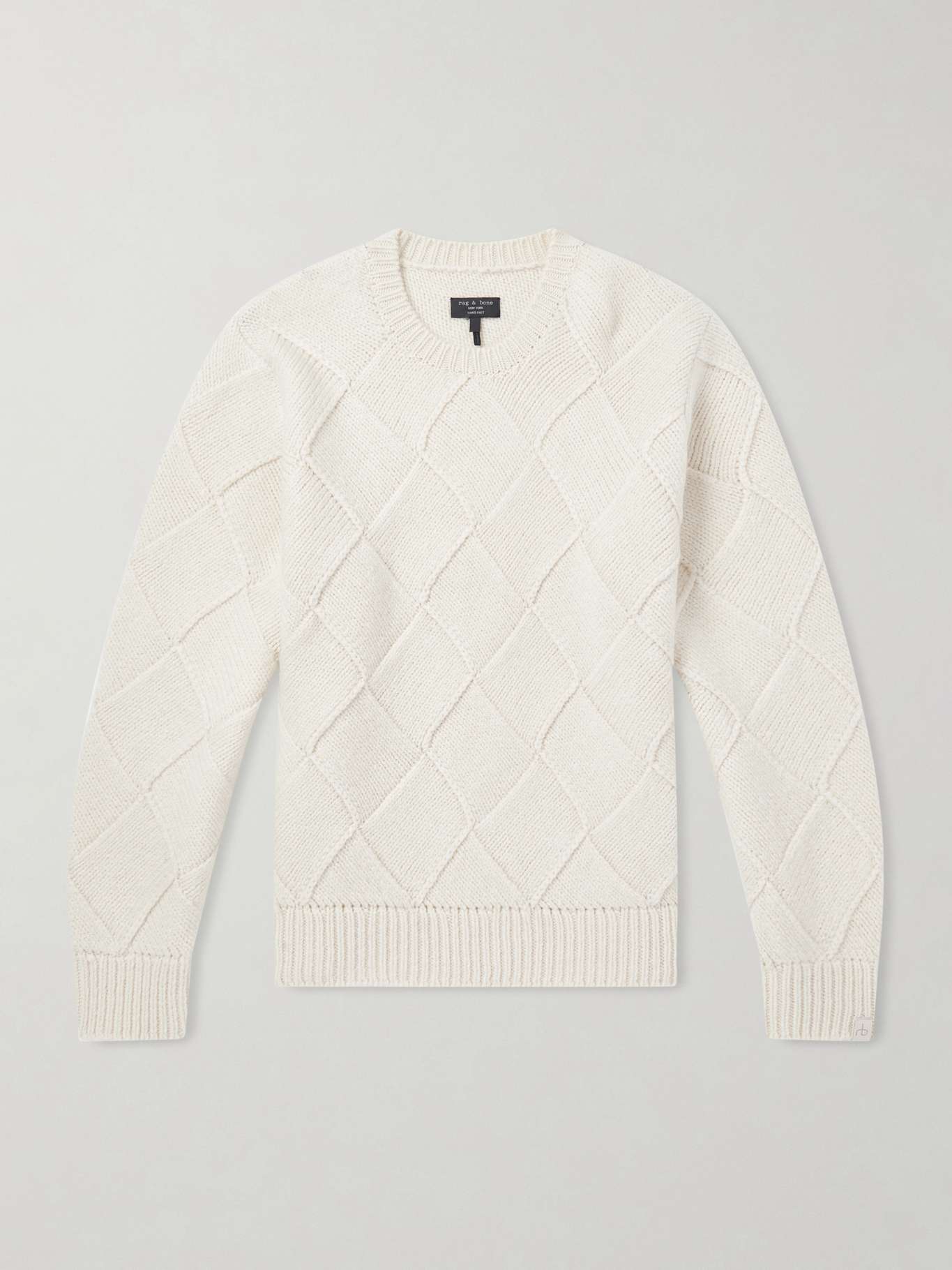 rag & bone's sweater is hand-knitted from pure wool using an entrelac technique that achieves a textured, diamond-stitch. It's naturally warm and has chunky ribbed trims.