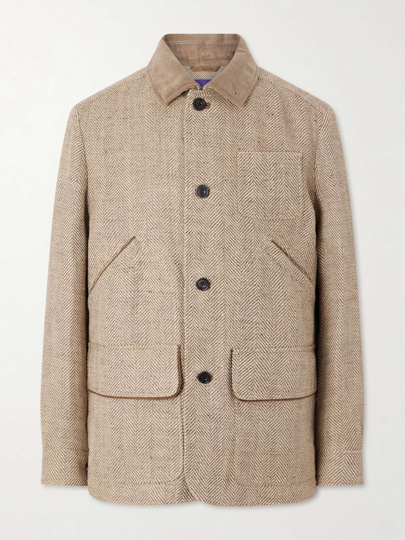 RALPH LAUREN PURPLE LABEL Corduroy and Suede-Trimmed Herringbone Linen Field Jacket