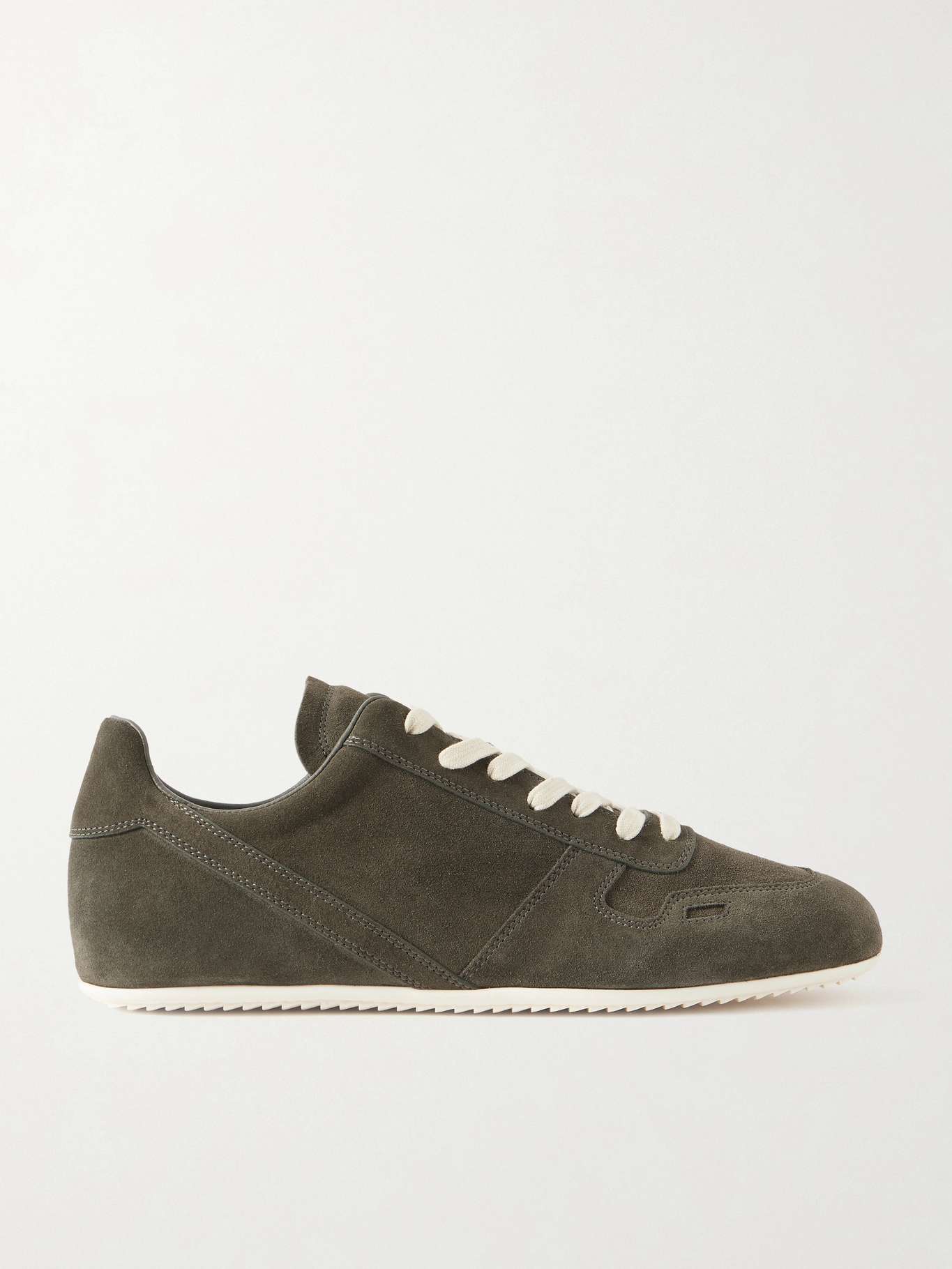Rick Owens' 'Minimal' sneakers are named for their streamlined profile. Inspired by old-school running styles, they're made from soft suede and rest on the label's signature shark-tooth rubber soles.