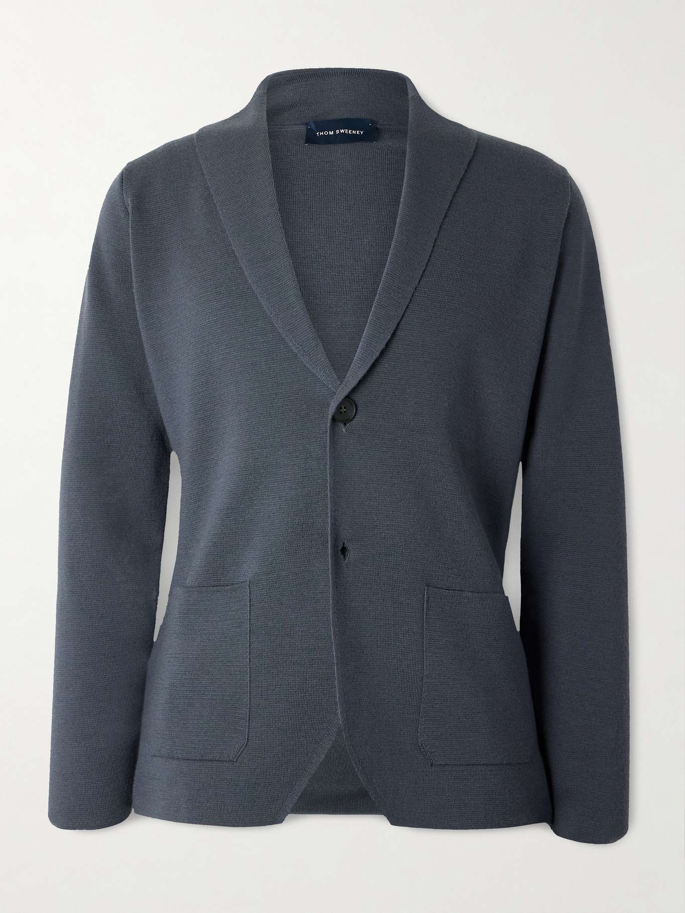 Thom Sweeney's blazer is knitted from pure merino wool with roomy patch pockets at the front. It's less structured than traditional styles, so wear it like a cardigan with jeans and loafers.