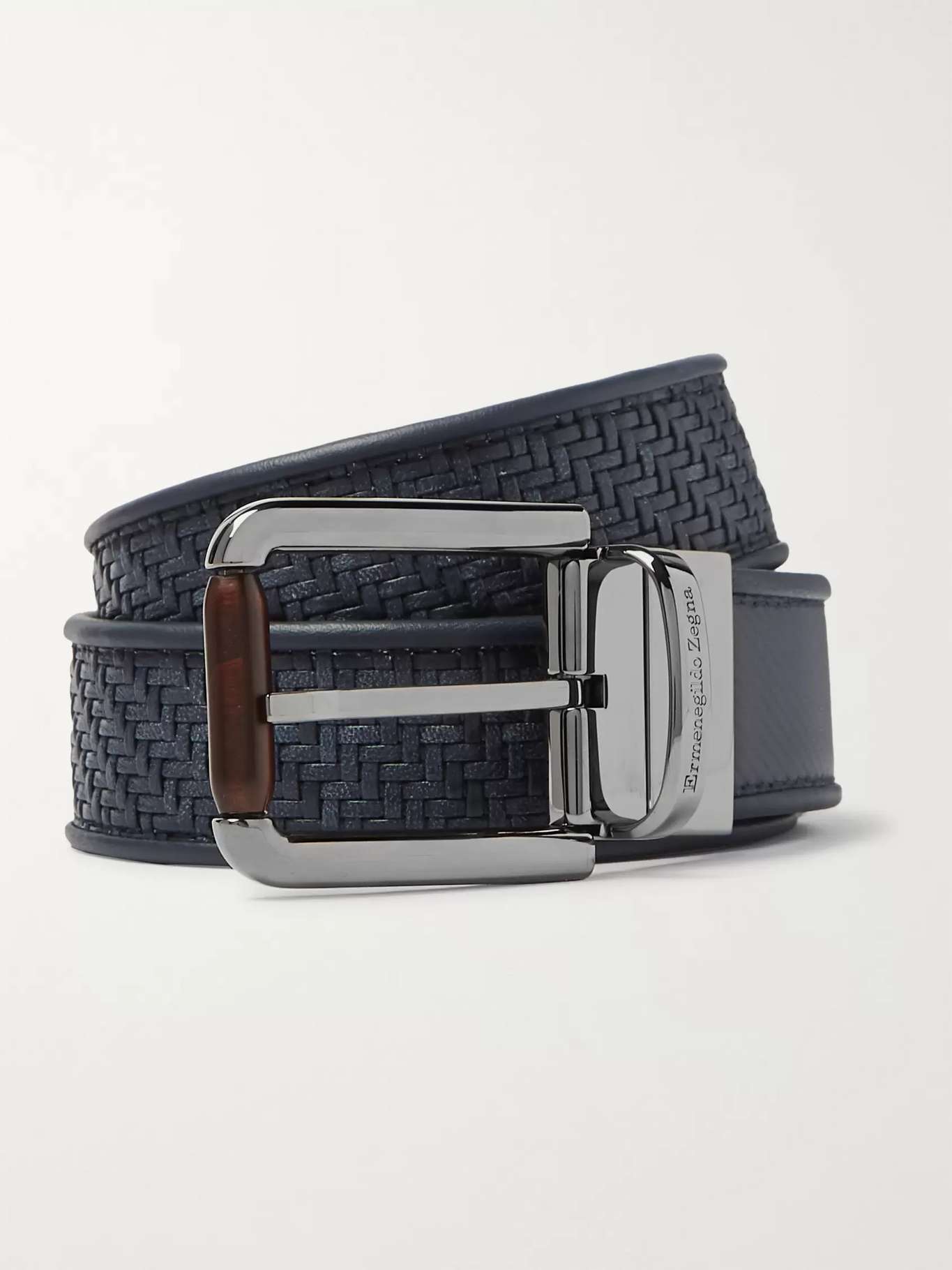 ZEGNA 3.5cm Blue Reversible PelleTessuta Leather Belt