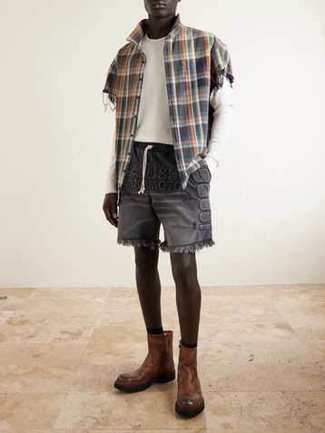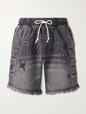 Straight-Leg Appliquéd Distressed Denim Shorts