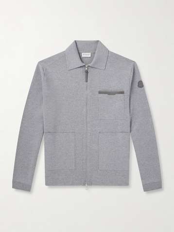 Leather-Trimmed Virgin Wool Zip-Up Cardigan