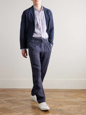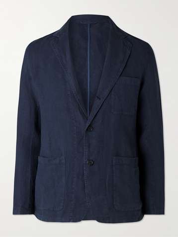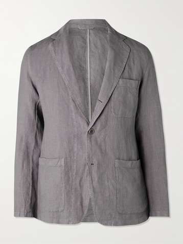 Unstructured Double-Breasted Linen-Blend Suit Jacket
